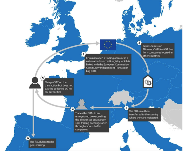 老實說,透過增值稅(VAT)詐欺並非新穎手法,此問題存在於國際貿易體系甚久,漏洞來自各國間的稅務差異。該案捕獲的多名被告,之前都有詐欺增值稅的前科,他們過去習慣用手機、電子產品等體積小、好運送的高價商品騙取VAT。這次最大不同,是標的物變成「虛擬」和「無形」的「碳權」(carbon credit),可免除運送、通關、報稅等繁複行政程序,對詐騙集團來說更好執行。因為碳權是法律規定所產生的許可權,只在電腦或合約數據資料上看得見。投機客或犯罪者只需坐在電腦前敲鍵盤、買入、賣出,大筆金額就立刻入帳。根據一位被告口述,以前騙增值稅要經過許多複雜步驟,沒想到詐騙碳權的過程,輕鬆到連他自己都不敢相信。