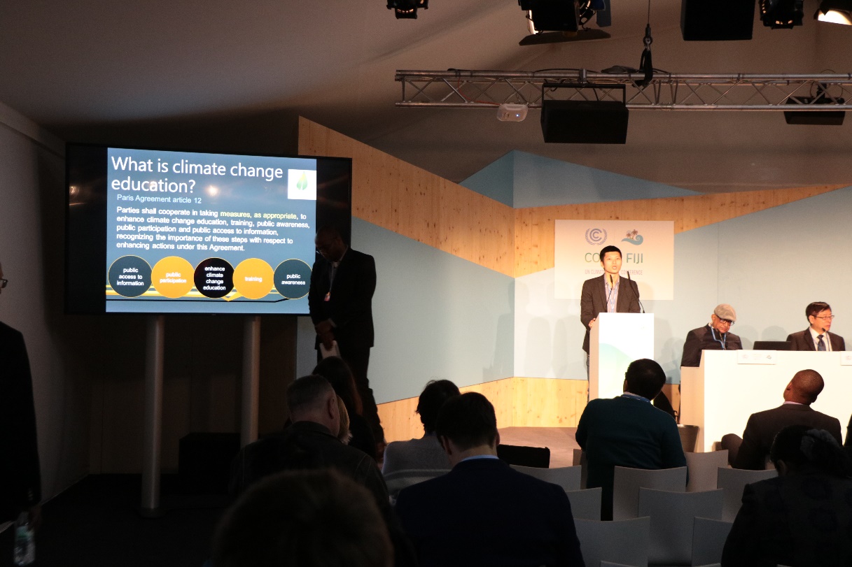 環境品質文教基金會於周邊會議上分享氣候教育推動成果。