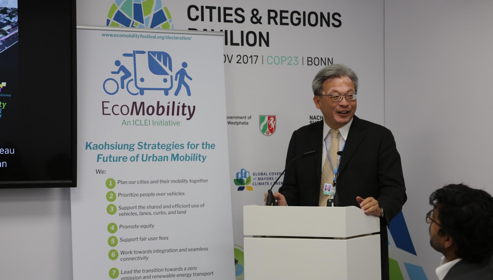 高雄市則挾著剛結束的「2017生態交通盛典」(EcoMobility)氣勢,在COP23與ICLEI密切合作,總共出席了五場周邊會議,分享話題涵蓋:水利、環保、交通、農業、氣候韌性等不同層面。