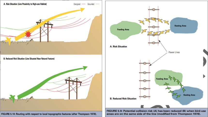 根據多年研究的成果累積,對鳥類來說,架設輸電線路其實也是種「棲地切割」的行為,除了必須調整位置,考量電線的間隔距離外,電線重疊後的視覺影響、或針對電線本身的標示,都是可以防止鳥類撞擊的方向。