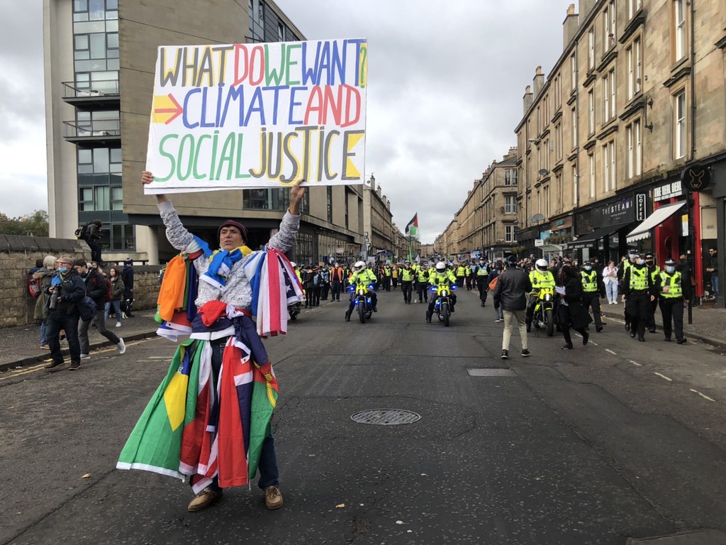 氣候正義遊行由蘇格蘭的「週五未來日」(Fridays for Future Scotland)主辦,該組織是響應童貝里兩年前號召的星期五「罷課救地球」行動,以「現在就要氣候正義」(Climate Justice Now)為訴求,舉辦大型遊行示威,同時給蘇格蘭政府壓力並與之對談,截至2019年已有4萬人響應該組織的活動,而5日在格拉斯哥登場的遊行,更是一口氣吸引2.5萬人上街。