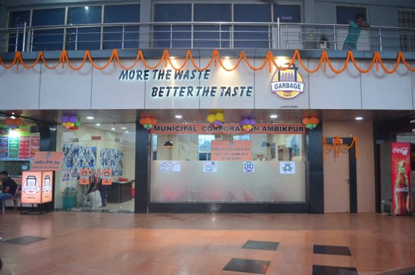 印度安比卡布爾市的垃圾咖啡館,主打用塑膠垃圾換溫飽。照片來源:擷取自Municipal Corporation Ambikapur《X》