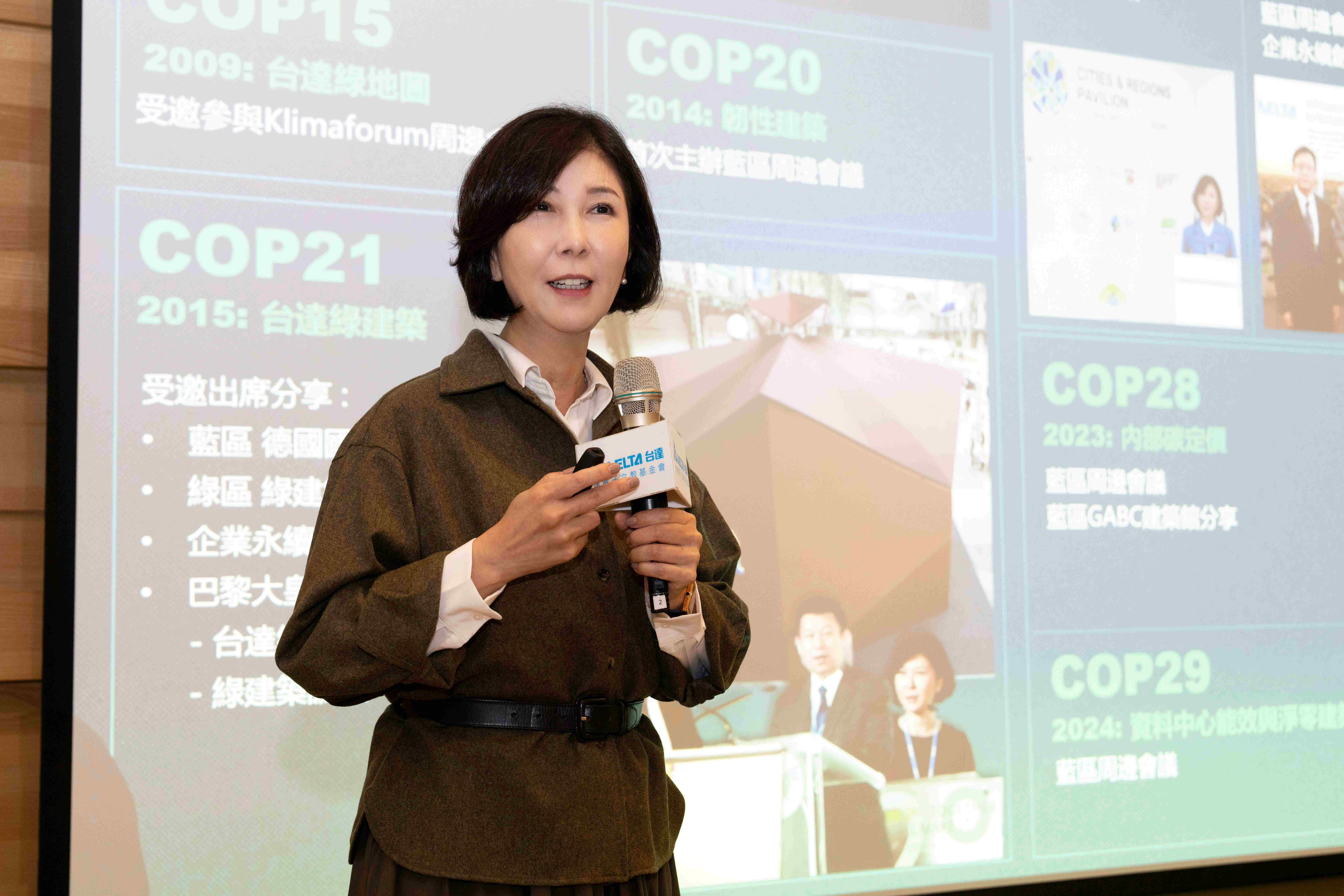 Shan Shan Guo, vice chairperson of the Delta Electronics Foundation shared that Delta has participated in the climate summit for 18 consecutive years. This year, with “AI for Green” as its central theme to advance sustainable future.
