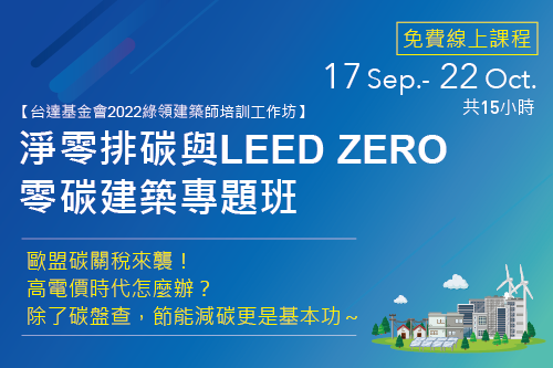 淨零建築與LEED Zero專題班 免費線上課開始報名
